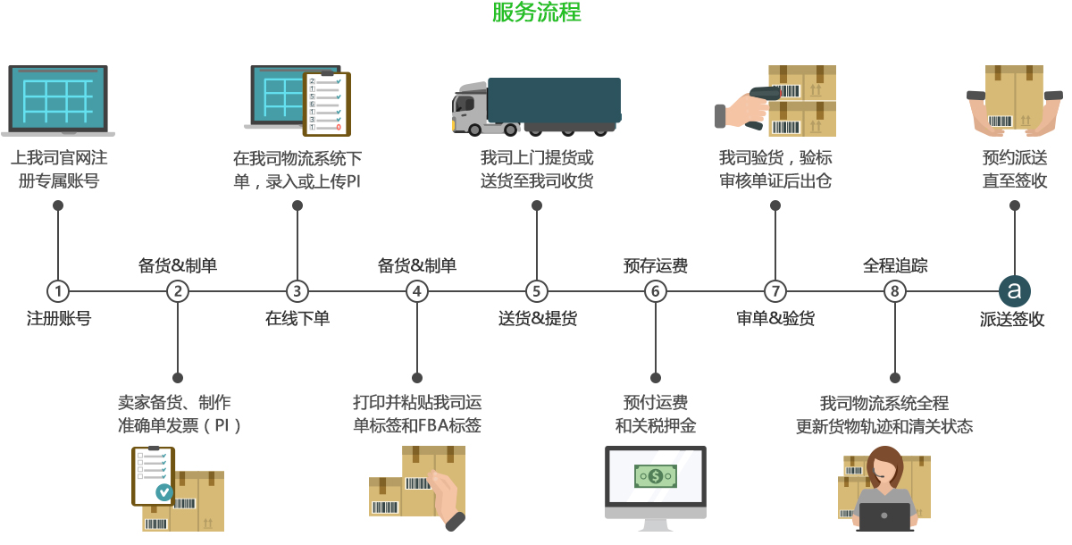 - 7、可协助卖家处理亚马逊仓库拒收件和退回的异常货物,避免产生高额的直接退回中国的物流费用。